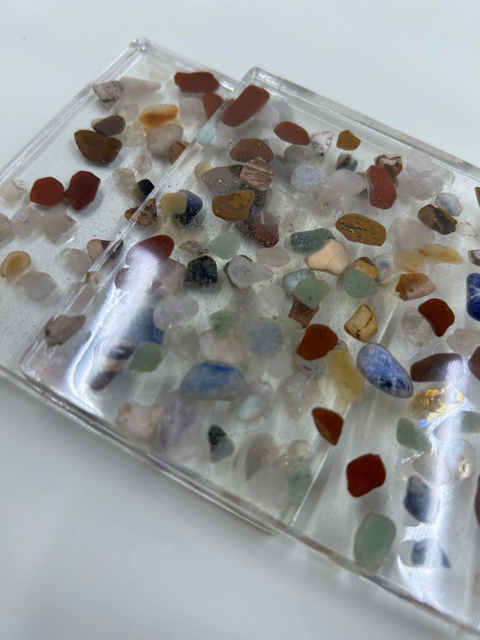 Shop › Crystal Chip Clear Coaster Image 1 of 3 Image 2 of 3 Image 3 of 3 Crystal Chip Clear Coaster $10.00 Two clear assorted crystal chip coasters. Quantity: Add To Cart Added! Two clear assorted crystal chip coasters.